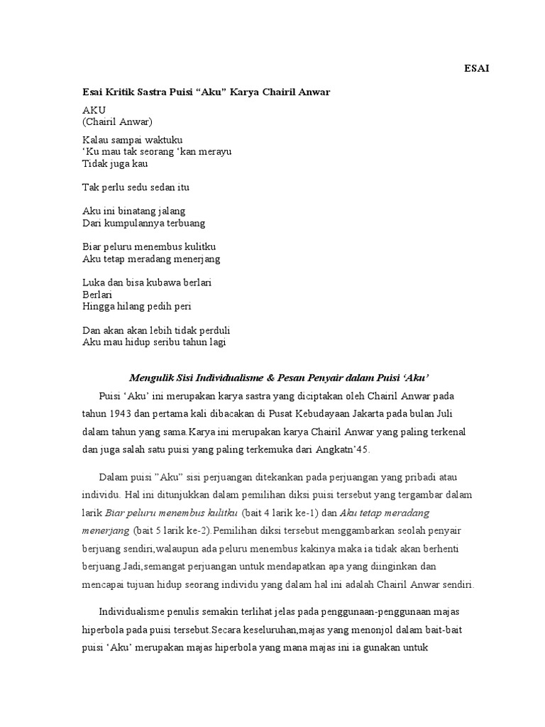 Buku-bukunya terentang dalam berbagai jenis. Contoh Teks Kritik dan Esai beserta Strukturnya Contoh Esai. Pementasan Lautan Jilbab diangkat dari judul puisi berjudul sama.